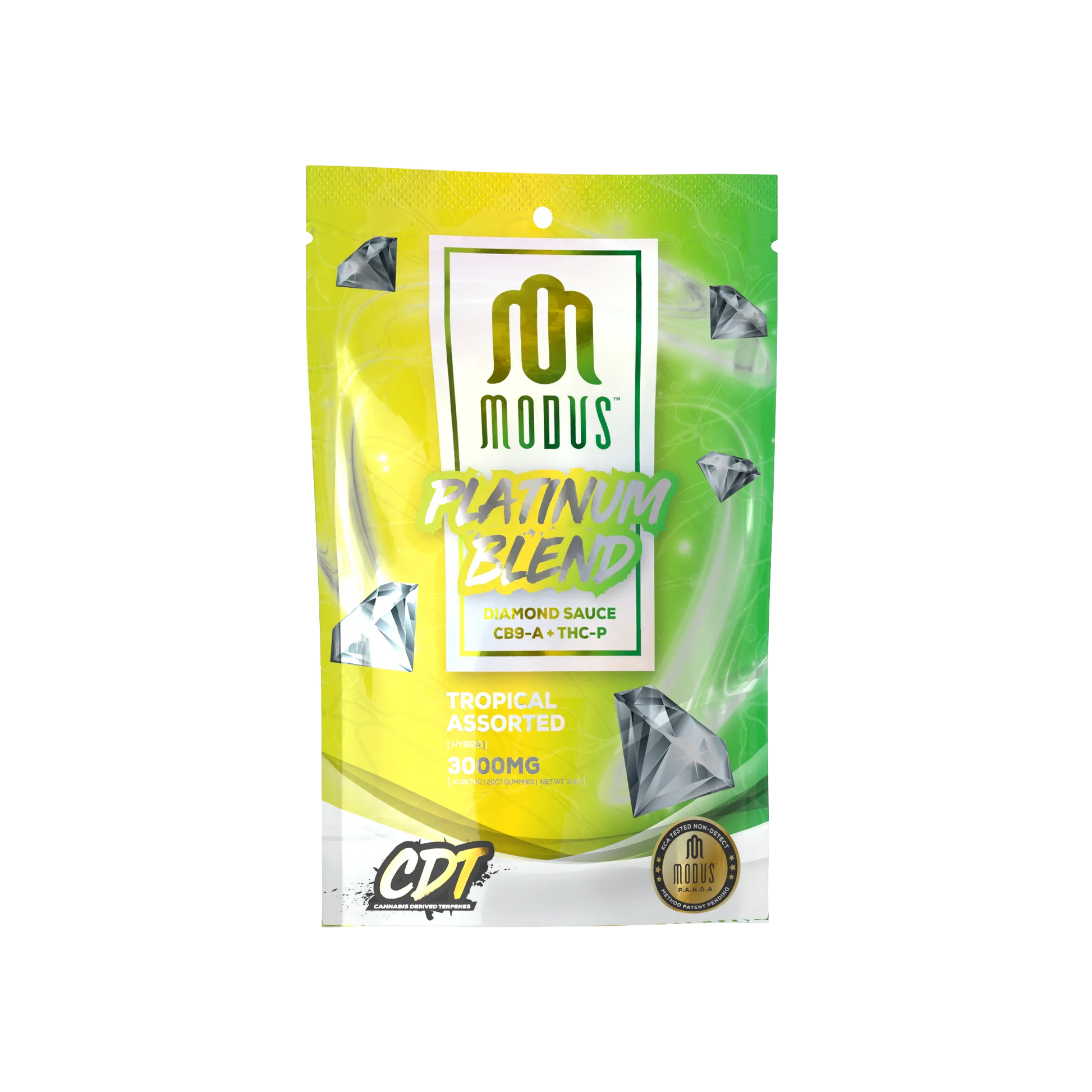 Introducing Modus Platinum Blend Gummies—a luxurious twist on your favorite indulgence, crafted to deliver a premium cannabis experience like no other. Infused with a proprietary blend of Diamond Sauce, CB9-A, and THC-P, these gummies redefine the art of edibles to give you a sophisticated fusion of flavor and potency.